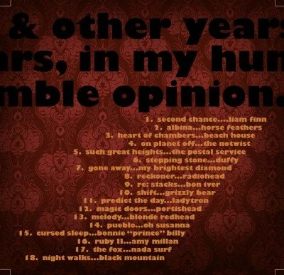 Oz splits his tracks into 2 CDs -- only this year, one of them is a triple album, as he could not narrow it down. Here's his "Best of NOT 08," which consists of music he discovered this year, but is not OF this year: